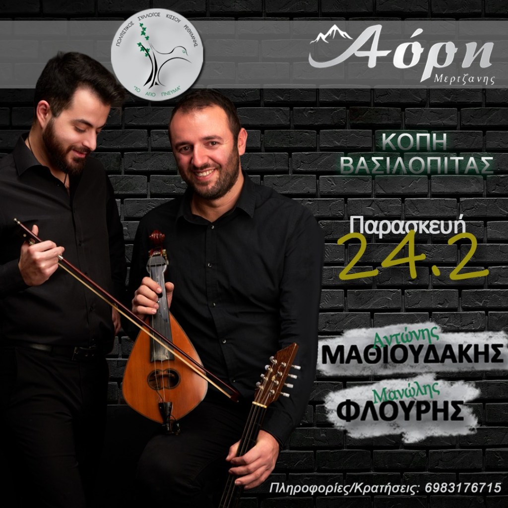 Ο δικός μας, Αντώνης Μαθιουδάκης και ο Μανώλης Φλουρής με το συγκρότημα τους, μας υποδέχονται στο Κρητικό Κέντρο Αόρη – Kritiko Kentro Aori για ένα μοναδικό γλέντι.